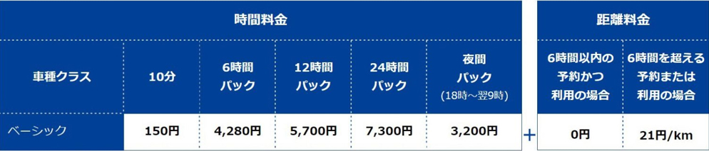 最後に「フロンクス」が設置されている料金とステーションをお伝えしましょう。車種クラスは、「ベーシック」です。料金はベーシックプランの場合、以下の料金で利用できます。