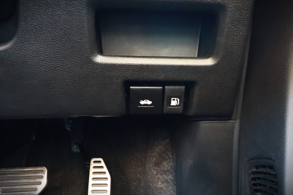 なお、カーシェアやレンタカーを利用するときに探しがちなエンジンスタートボタンは、ハンドルの右奥の設置。ここには、ヘッドアップディスプレイの高さ調整や、全方位モニターの表示切り替えなどのスイッチも並びます。また、給油口のオープナーは、運転席の右下にありました(給油口は左側)。