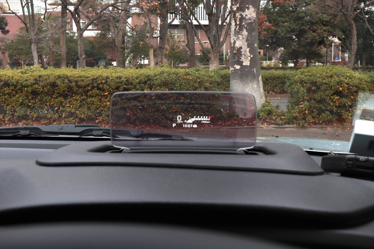 たとえば、本革巻のハンドルにはパドルシフトがついていますし、前方を見れば速度やナビの案内などが表示されるヘッドアップディスプレイ(HUD)があります。