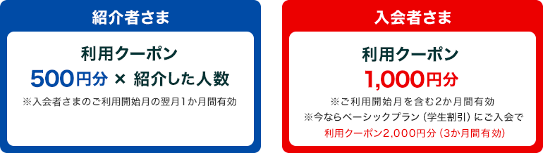 お友達を紹介した方も、紹介を受けた方も利用クーポンがもらえます。